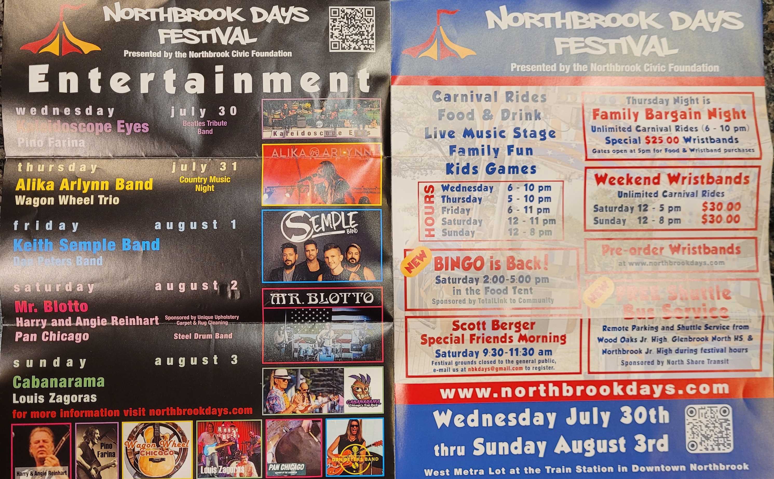 NorthbrookDays.com에서 자세한 스케줄, 밴드 라인업, 손목밴드 정보 등을 확인할 수 있어요!